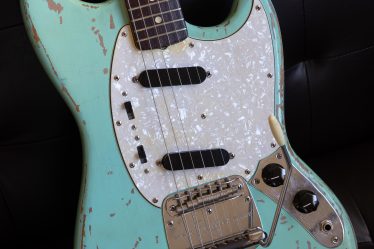 Fender Mustang 1966 Daphne Blue ボディ入手時の状態 1966のボディ。ウェザーチェックが酷くなったところでオーバーラッカーされたような状態。ダフネブ … 続きを読む Fender Mustang 1966 Daphne Blue Body